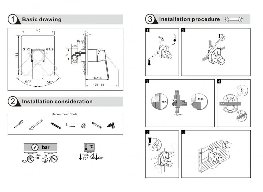وجه مسكة خلاط دفن مخفي خط واحد مربع كروم من موديل جروهي 1W